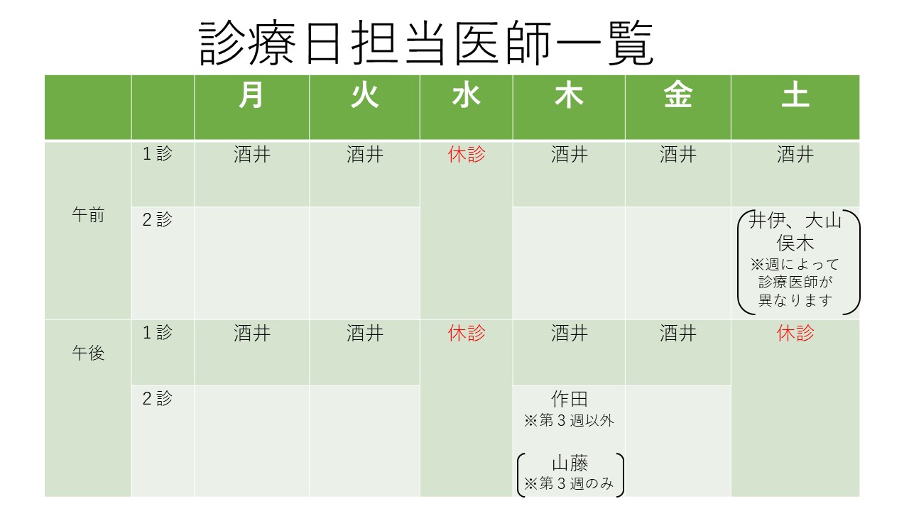 医師診療日一覧1