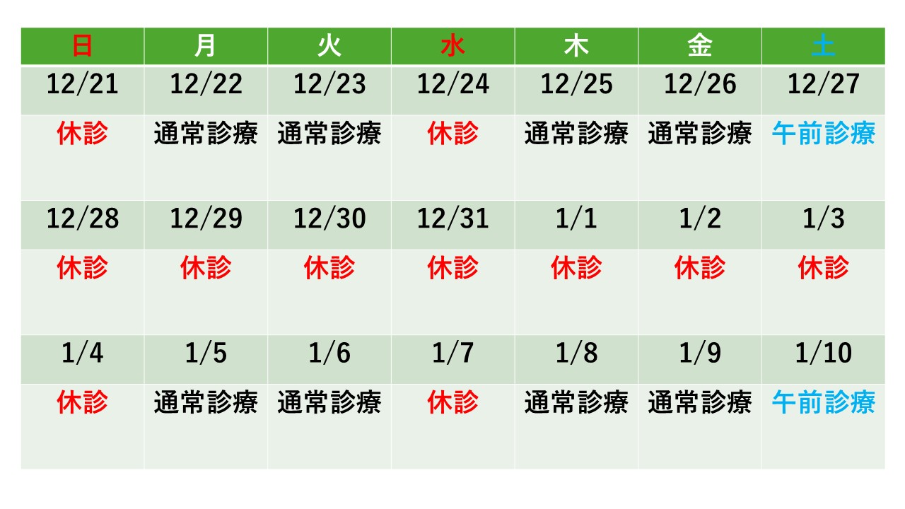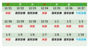 年末年始の診療について